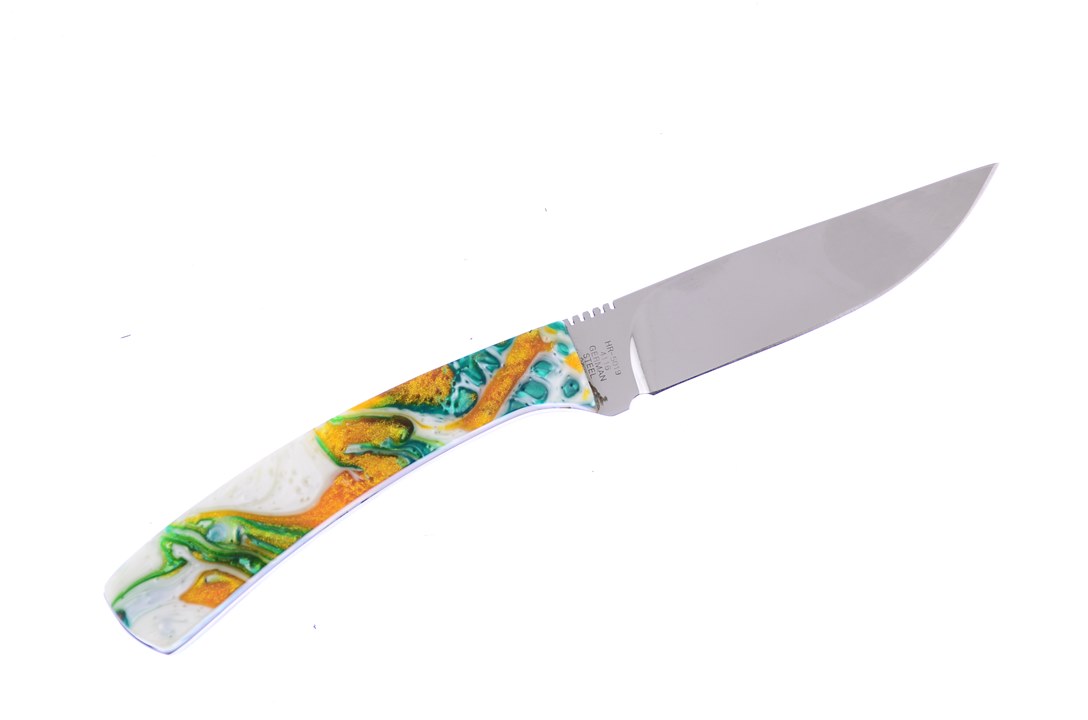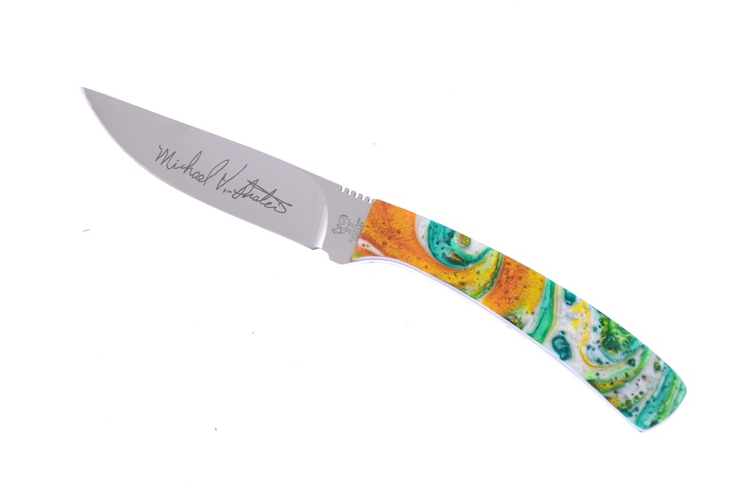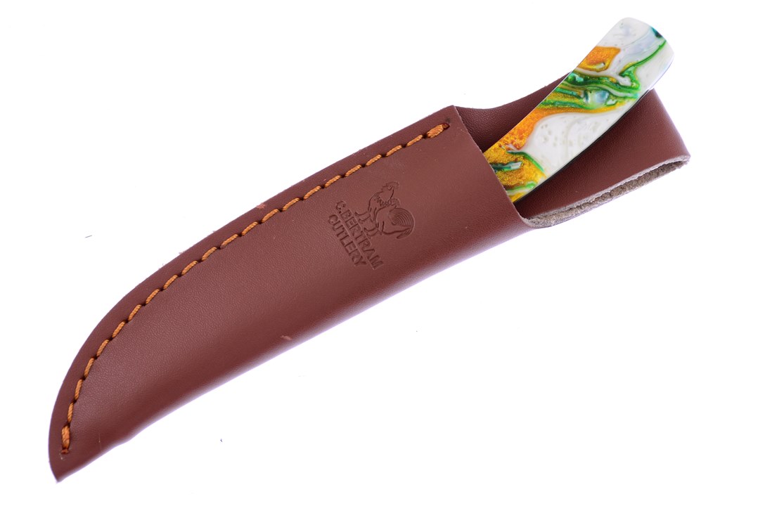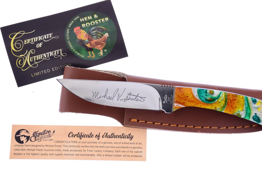 This 7 1/4" Emerald River Custom Skinner is another great piece from Hen & Rooster. With Stainless Steel Blade, Full Tang Construction, and Leather Sheath, you need to pop this in your cart now while supplies last!
