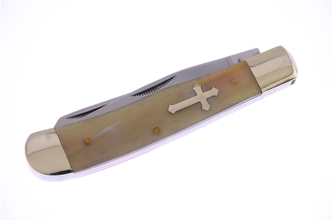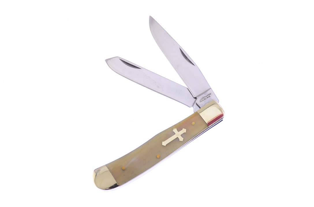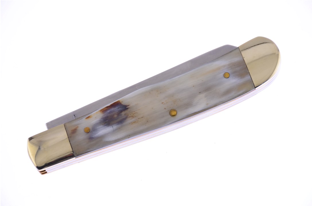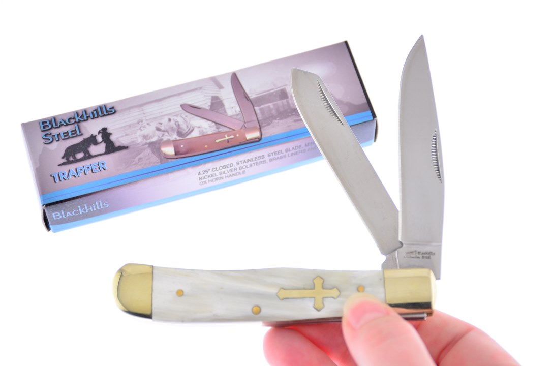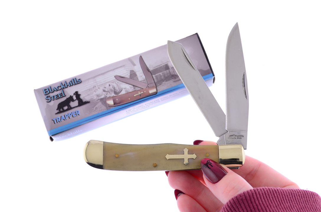 Customers can't get enough of the Blackhills Steel 4 1/4" Ox Horn Trapper! It has Brass Pins and Stainless Steel Blade and, no one can resist, so get yours while you can!
