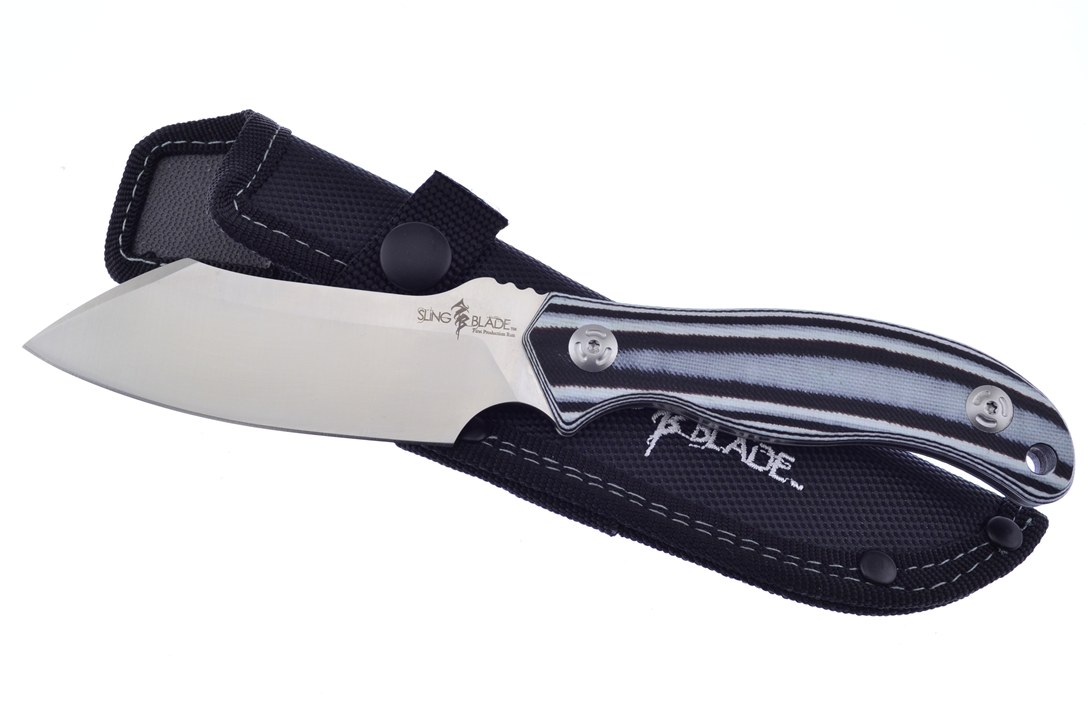 You will love the quality Sling Blade puts into their fixed blades. Full Tang D2 Steel blade with black nylon sheath.