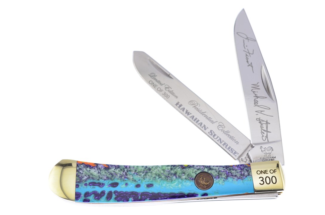 This 4 1/4" Hawaii Sunrise Custom Trapper is another great piece from Michael Prater. With Etched Blade and Limited Edition, you need to pop this in your cart now while supplies last!