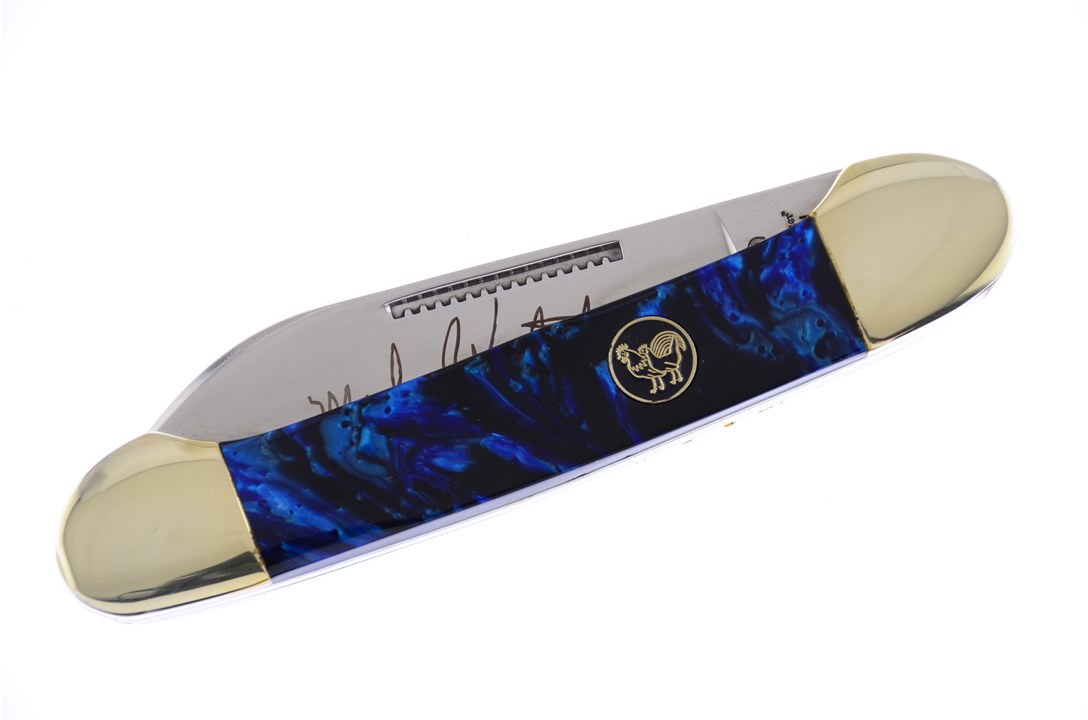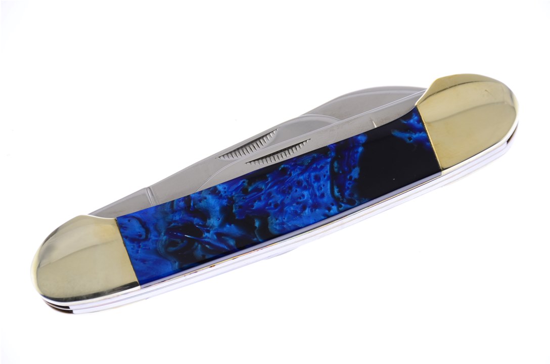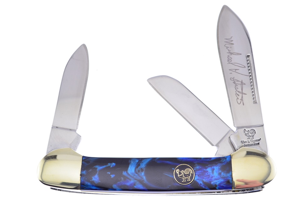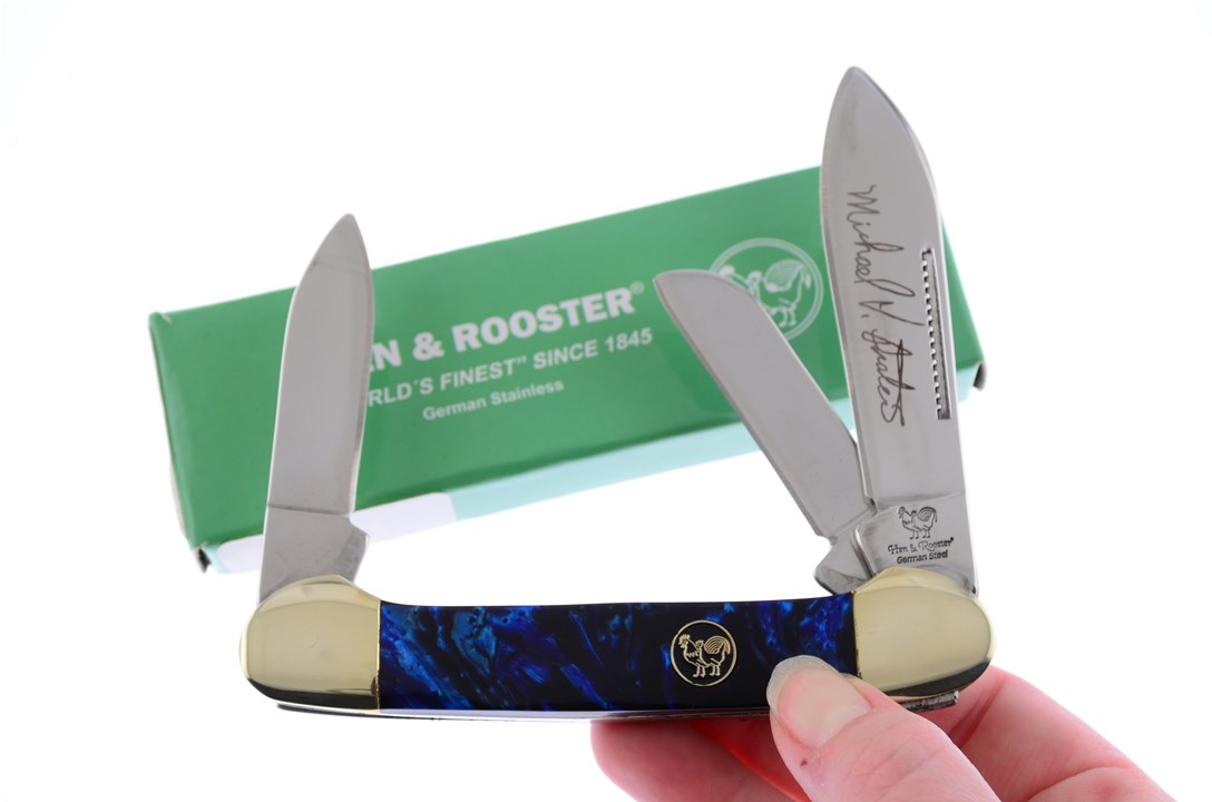 This 4 1/2" Blue Velvet CorelonĀ® Gunboat by Hen & Rooster is a great choice for any collector. With Thumbnail Pull and Etched Blade, you need to pop this in your cart now while supplies last!