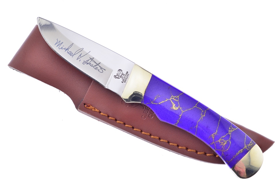 This Hen & Rooster 6" Purple Matrix Custom Skinner is a customer favorite! With Nickel Silver Guard, Nickel Silver Pommel, and Leather Sheath, this is going to be flying off the shelves, so don't miss your chance to get one!