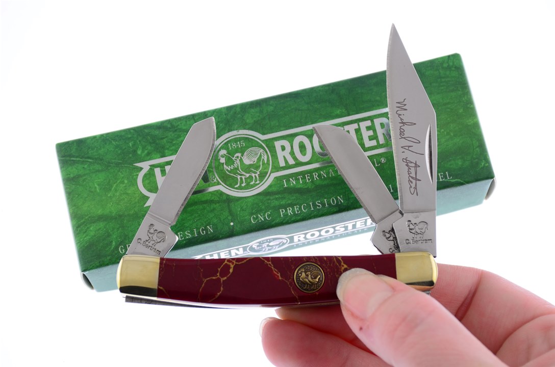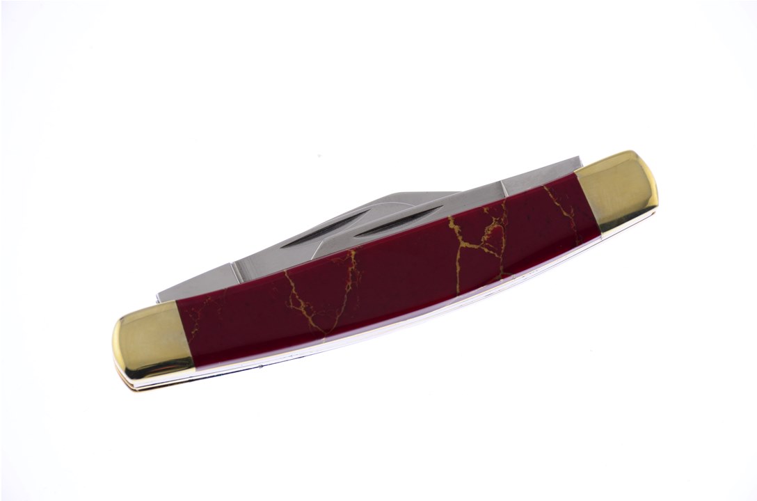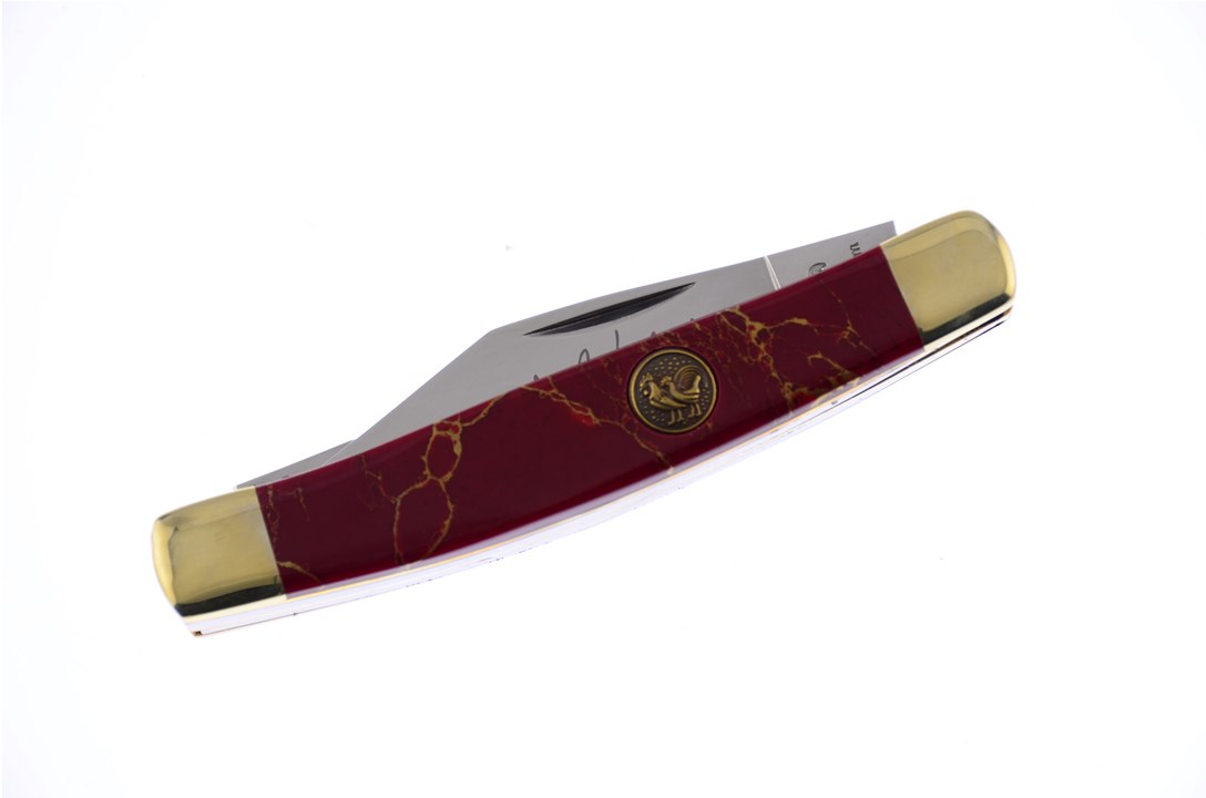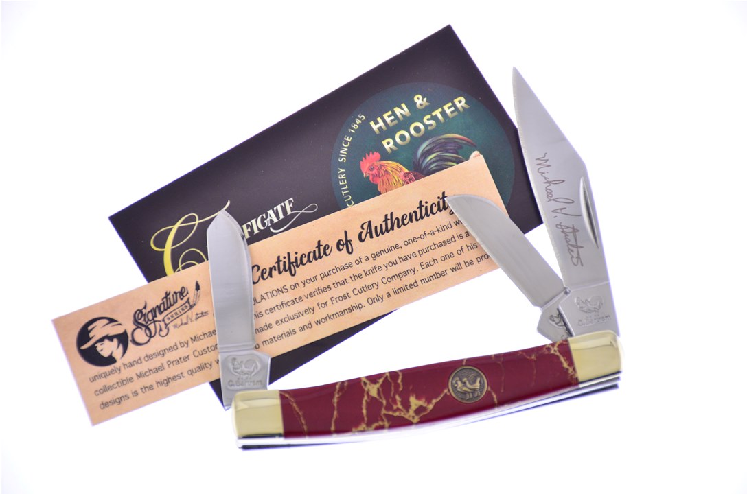 This Hen & Rooster Int'l 3 1/4" Red Matrix Stone Stockman is a customer favorite! With Thumbnail Pull and Certificate of Authenticity, stock is limited, so add to your cart before they are all gone.